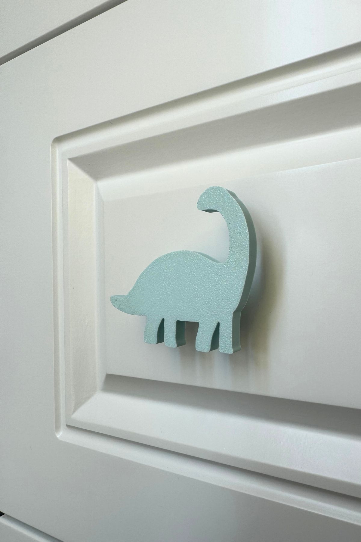 • Mavi Dino Dolap Kulpu:Canlı mavi renkteki bu sevimli dinozor, çocuk odalarına hayal gücü ve eğlence getirirken, her dolap açışta çocukları tarih öncesi dünyaya sürükler. Mutfak ve banyo dolaplarına da zarif ve modern bir dokunuş katan bu kulp, evinize sıcak ve macera dolu bir atmosfer kazandırır.