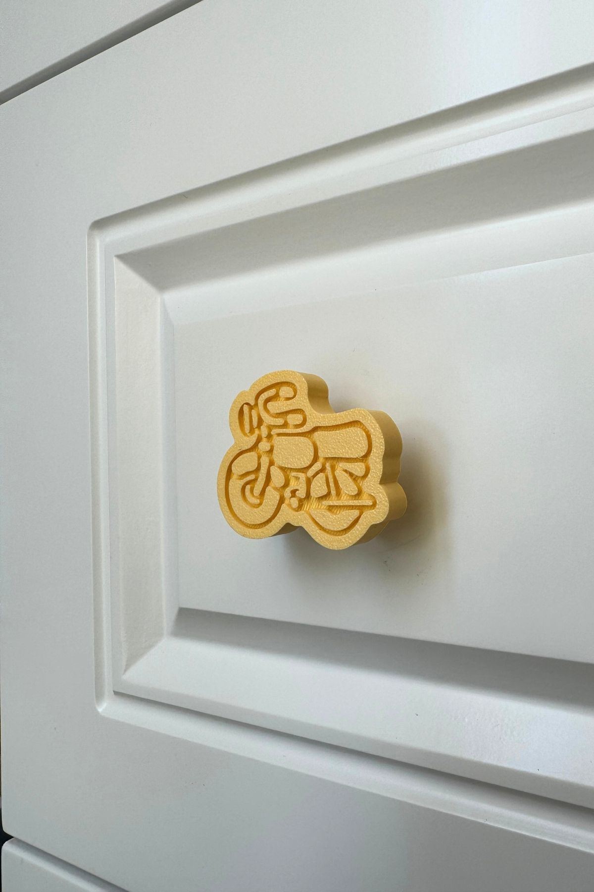 Sarı Motor Dolap Kulpu - Çocuk Odaları, Mutfak ve Banyo Dolapları İçin Eğlenceli ve Sağlam Kulp